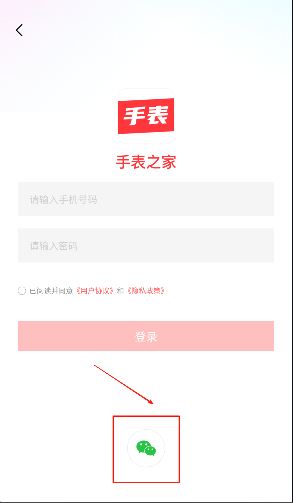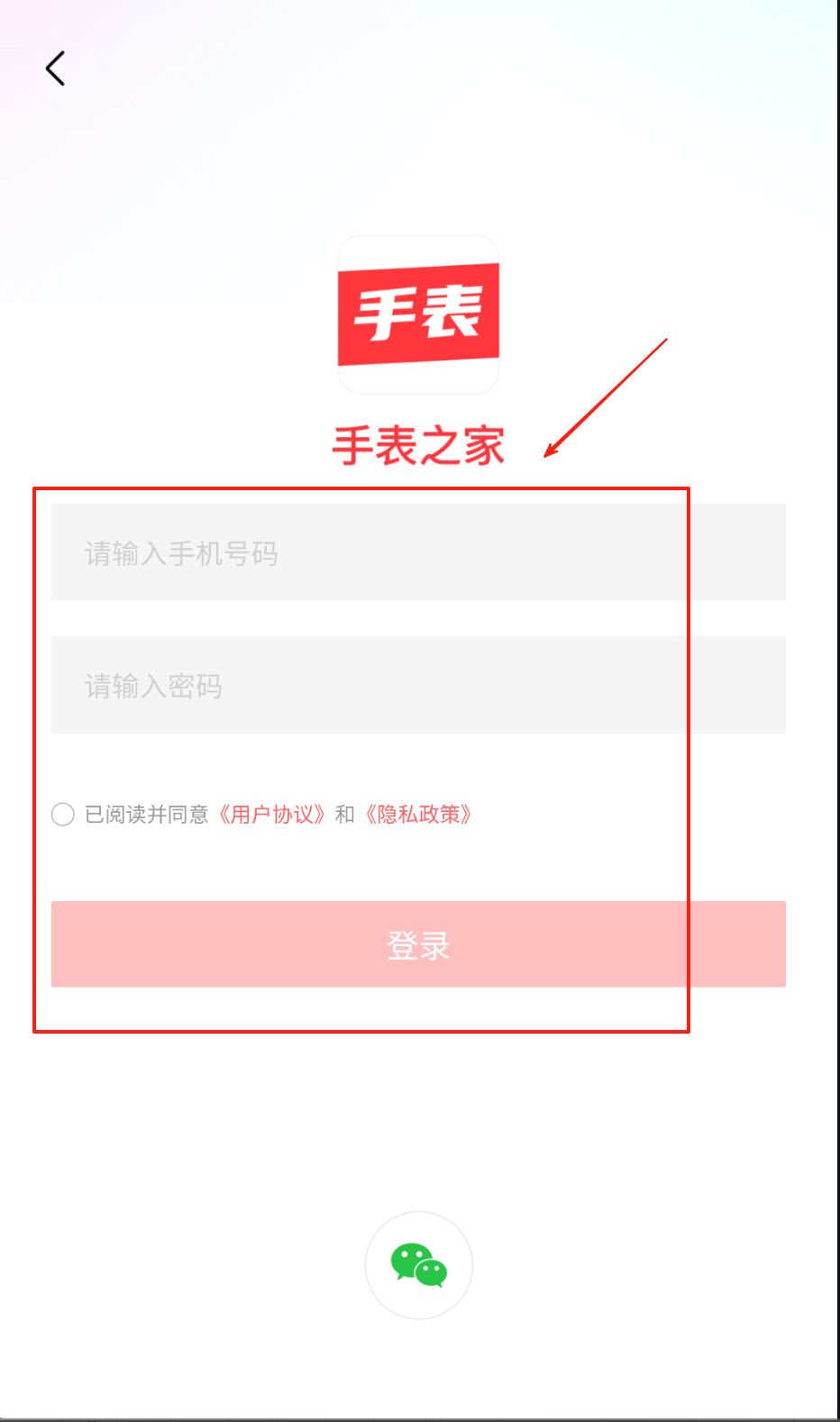 1、启动软件后,顶部呈现“手表之家”的红色LOGO,页面中间的黑色“账号登录”提示醒目直观,底部还设有微信登录的快捷通道。