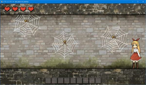 越过感叹号会触发CG,回到存档点,走到左边的房间里用钥匙打开箱子得到【火柴】。重新来到大蜘蛛的面前,利用手中的火柴烧了蜘蛛网,就可以通过第一层,上到第二层。(第一层末尾门旁有医疗包,可恢复一滴血量)