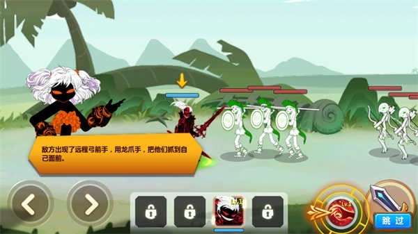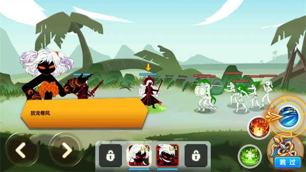 游戏中玩家同时能上阵四名火柴人英雄,点击即可切换。