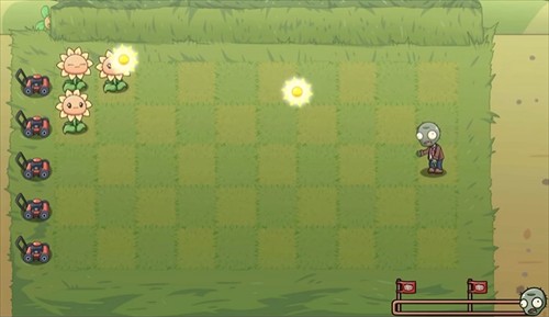 2、每一关选择的植物会在左侧放置,通过消耗阳光即可在场景中进行种植,在种植时会有图标标识可以种植的格子;