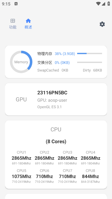 1、可实时查看 CPU、内存、温度、功耗、FPS 等关键系统状态。