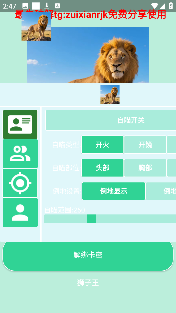 狮子王公益直装是一款为射击游戏打造的游戏辅助工具,该软件旨在为玩家提供更好的“吃鸡”游戏体验,它无需root权限即可直接使用,为用户提供了极大的便利。用户可以根据自己的需要自由设置各种参数,以优化游戏性能和体验。软件支持开启悬浮窗功能,玩家可以随时开启和暂停,使得游戏过程更加灵活和便捷。此外,该软件能够适配绝大多数安卓手机,设置过程也非常简单,适合不同水平的用户使用。这种设计使得玩家能够在不违反游戏规则的前提下,获得更加顺畅和愉快的游戏体验。