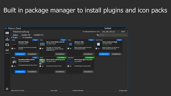 3、接着打开手机上的MacroDeck,输入刚才的配置好的ip和端口。