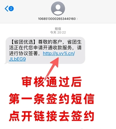 在微信省团开店通中,可长按二维码,识别后跳转至微信支付商家助手的签约页面。(若无法直接跳转微信,可截图保存签约二维码,再用店主实名认证的微信扫描该二维码完成签约)