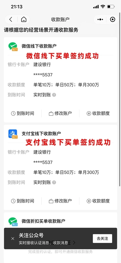 注意后台顶部小喇叭的提示,所有该签署的都签署完成(小喇叭可能会有延迟,收款账户里确认全部签约完成即可)