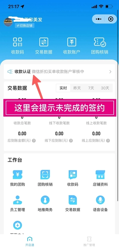 12、第一个签约完成后,回到省团开店通去看审核进度,查看微信和支付宝的线下收款签约审核情况