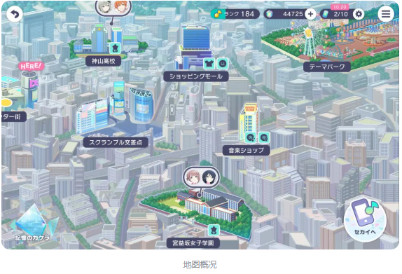 这是现实世界的地图,其中“宮益坂女子学園”和“神山高校”是买花的地方(30级解锁)提升综合力