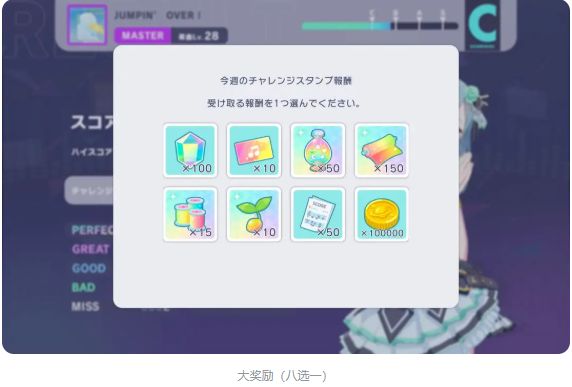 CHALLENGE LIVE(类似于每日签到?)【每天只能打一次,每周全勤能获得一个大奖励】解锁条件为等级达到5级
