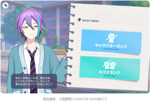 只要管上方的CHARACTER RANK就行,下方的KIZUNA EANK随打歌自动提升。