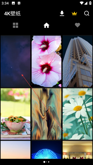 1、打开手机4K壁纸应用,点击界面中的【喜欢的图片】选项。
