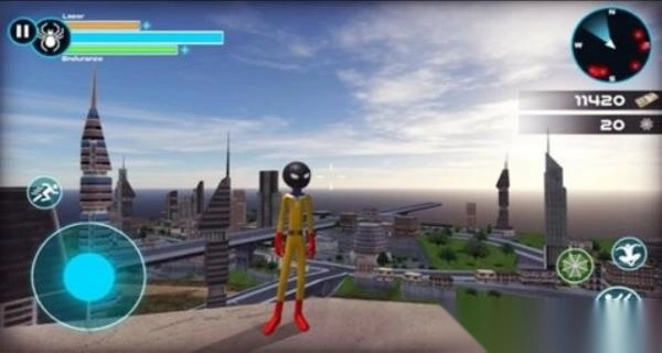 2. 身处城市高处时,先熟悉界面操作,留意右侧的技能以及左侧的摇杆,据此规划好移动与探索的路线。