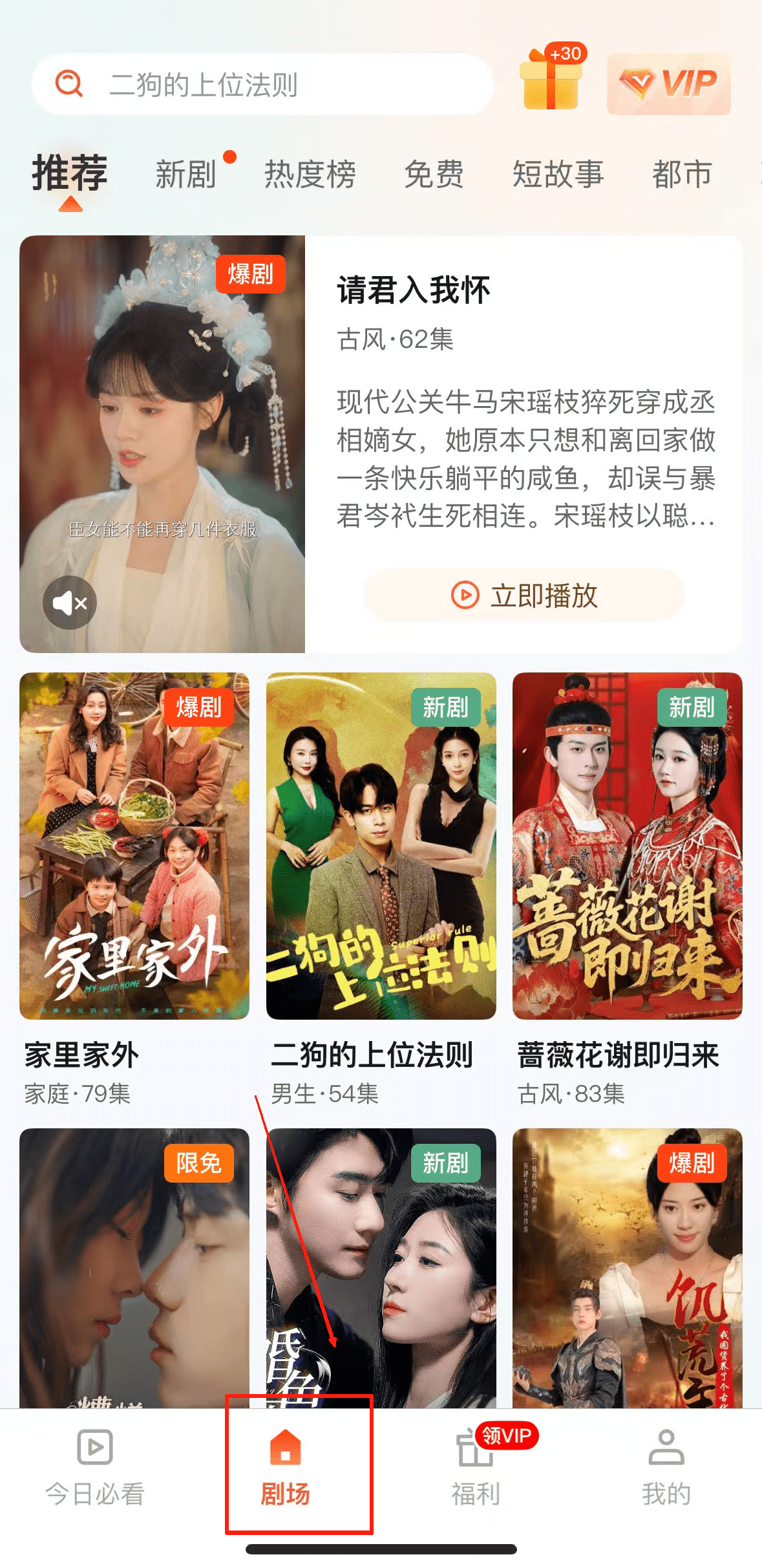 1、在首页推荐页面,用户可以浏览由AI算法推送的热门短剧;通过点击题材标签,能够筛选出复仇、重生等不同分类的内容;还能借助收藏夹功能,搭建起属于自己的专属剧库。