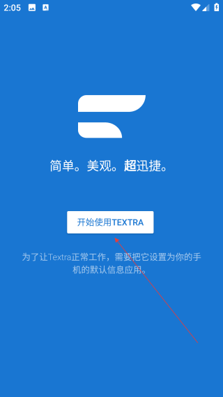 1、打开Textra短信,点击【开始使用】。