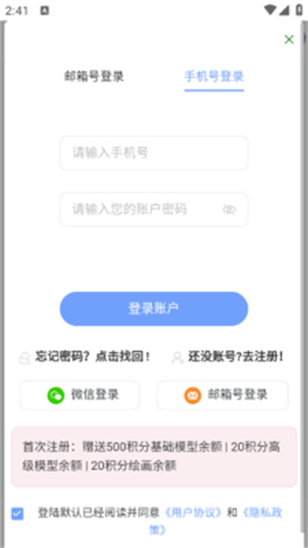 2、您可以使用微信扫码或邮箱、手机号登录IMYAI智能助手App。