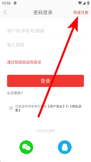 3、在登录界面,点击快速注册,进入快速注册流程。
