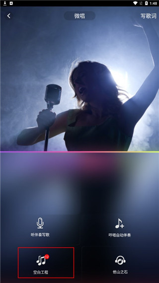 2、哼唱自动伴奏:哼唱一段原创旋律,微唱为你自动配上伴奏。