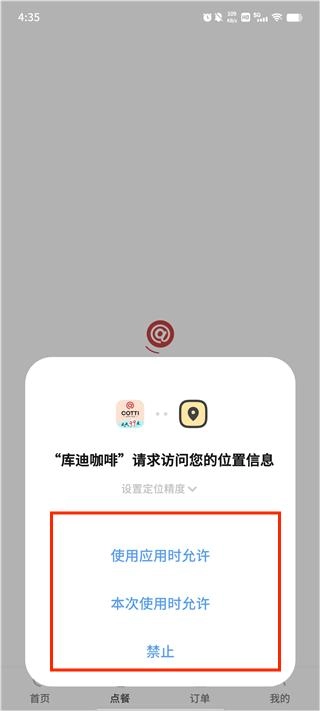 然后会获取位置权限来判断你选择哪家门店,勾选允许即可