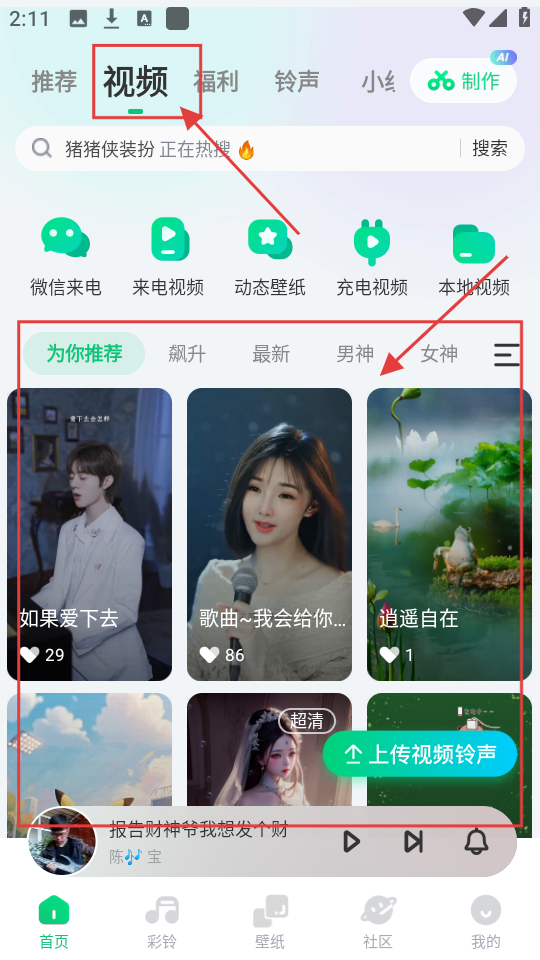 1、首页【视频】分类里,有好多推荐视频,选喜欢的,点进去看看内容超棒。