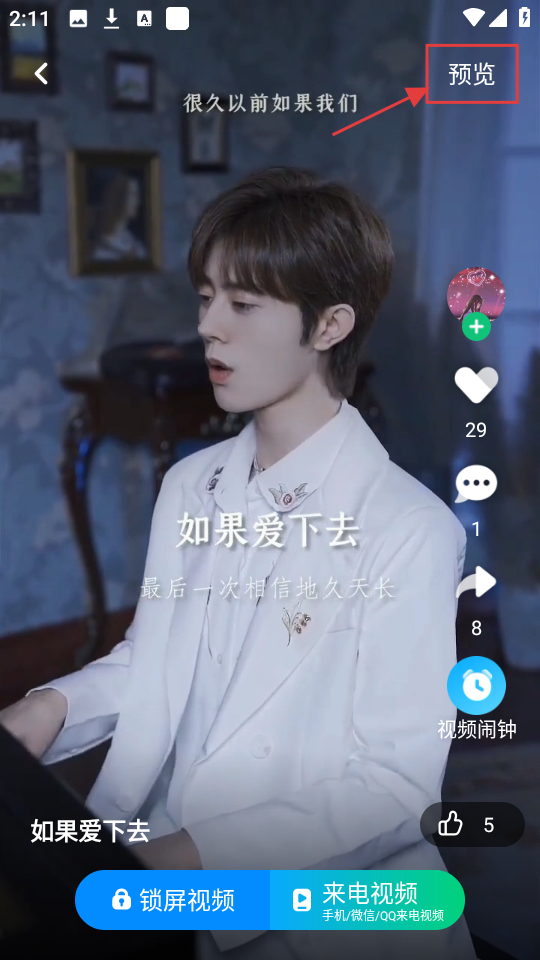 2、视频播放页,点【预览】,能提前看看设为来电视频的效果,超方便。