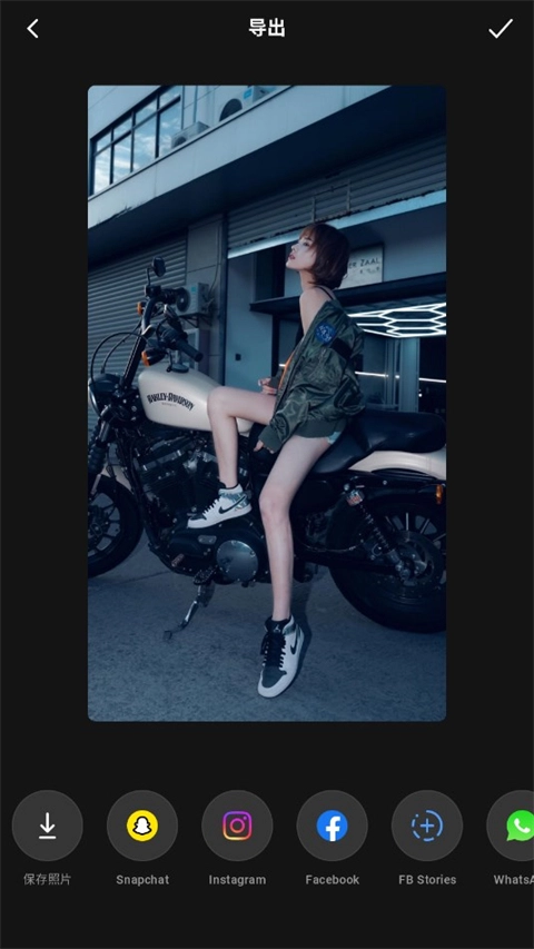 4、编辑完成之后点击右上角的下一步,选择保存照片或是分享到社交平台。