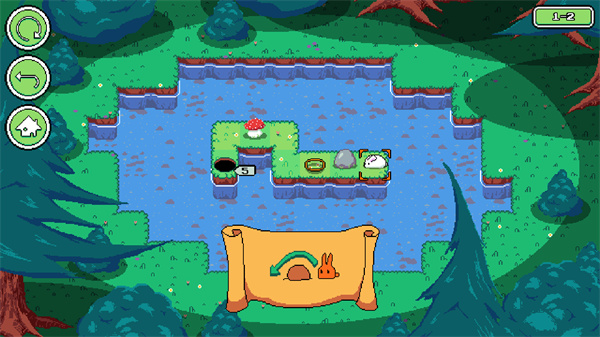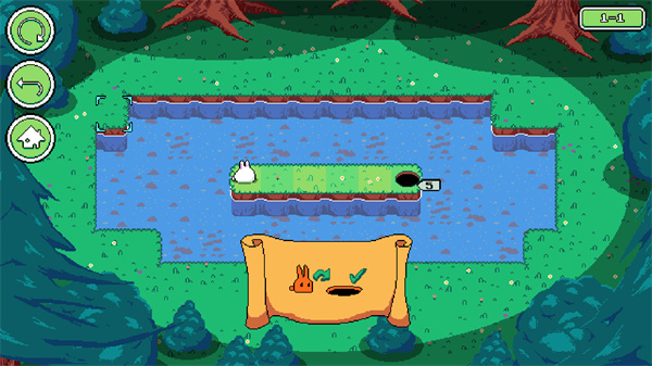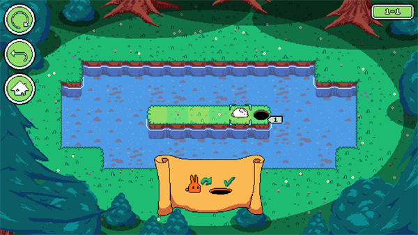3、完成新手教程后需要玩家根据了解的游戏特性让所有兔子在规定步数内回到窝中。
