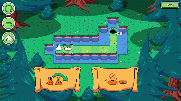 4、后面的关卡还会出现多个兔子,玩家需要让他们全部跳进同一个洞口。