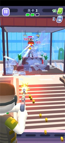 1、本游戏以第三人称视角展开操作,玩家只需点击画面中的敌人,就能朝着点击方向射击,若命中敌人头部,还可造成额外伤害。