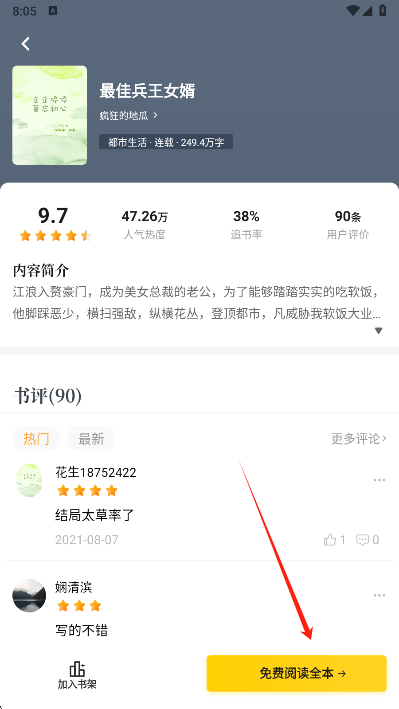 4、点击即可阅读详细介绍,想看的话再次点击免费阅读全本