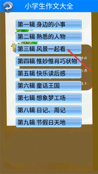 2、进入后选择【第三辑-风景一起看】分类,该分类属于写景类作文专辑。
