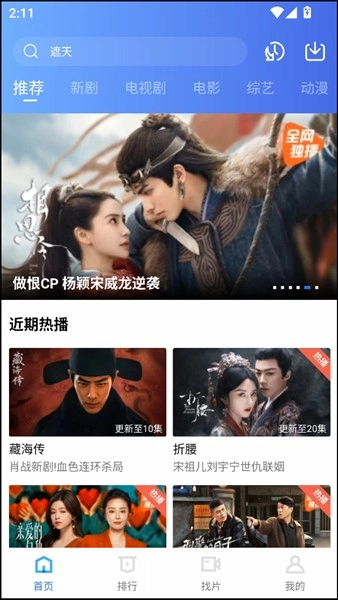 在软件的首页,能看到推荐、新剧、电视剧、电影、综艺、动漫等一系列板块。