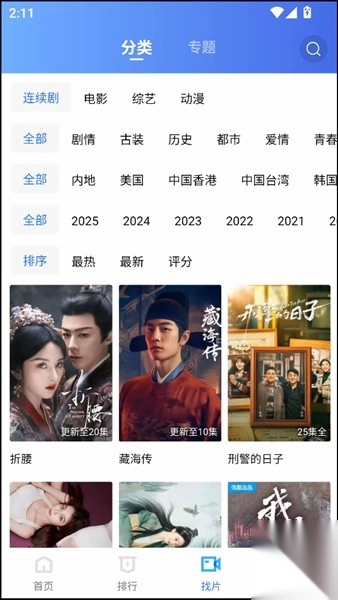 3、在找片界面下,能够依据类型、地区、年代等一系列条件,精准搜索到自己喜爱的电影和电视剧。