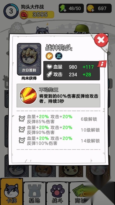 1、丰富的狗头人皮肤:游戏中有各种的狗头供玩家收集,每个狗头都有不同的技能和特点,可以根据自己的喜好和游戏需要选择阵容。