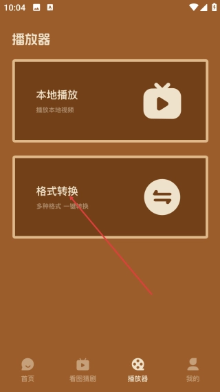 2、在播放器页,点击【格式转换】选项,进入视频选择的操作页面。