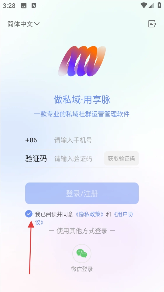 3、勾选【我已阅读并同意《隐私政策》和《用户协议》】。