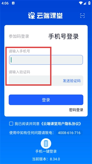 2、在登录界面选择手机号登录,填写手机号并获取验证码后,勾选协议即可登录。