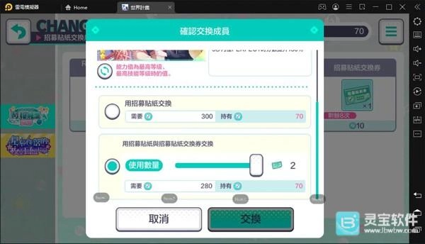 300张贴纸→交换1次「卡池主推的★4角色」,用来兑换当期限定角色。