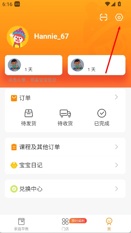 1、打开家庭早教App,在首页界面找到右下角的“我”选项,点击进入个人中心。