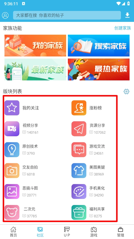 2、在社区中选择所需发帖的板块并点击进入。
