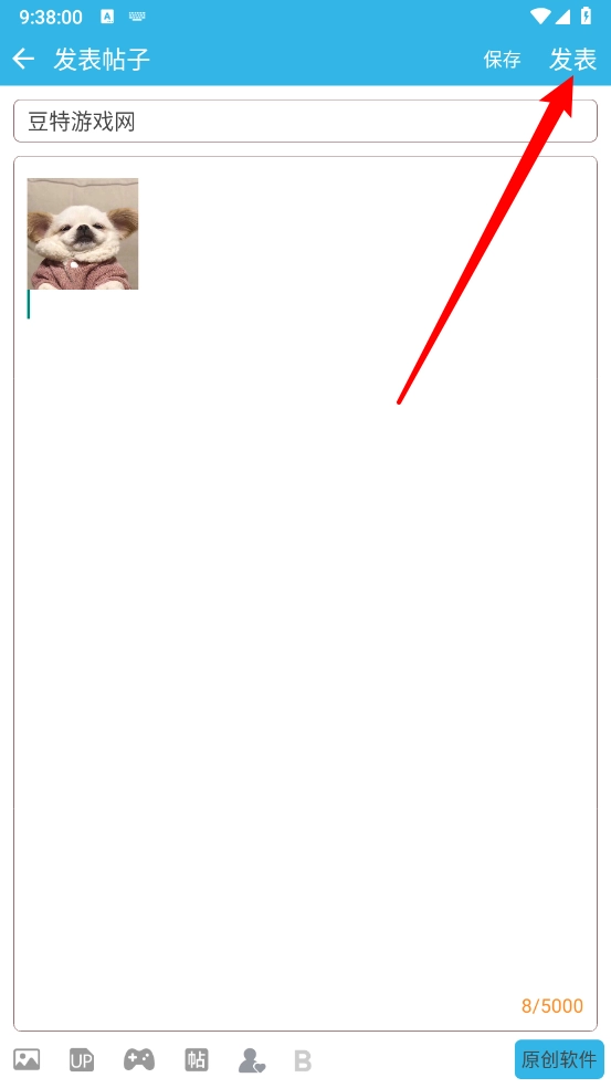4、输入标题和内容后点击右上角"发表"即可。