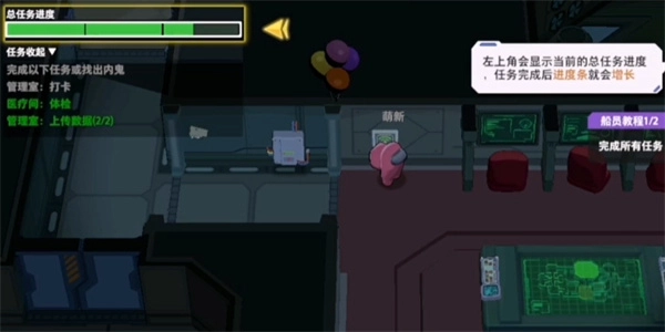 1、刚开始玩家扮演一名船员,取胜条件就是完成任务,或者找出内鬼将其淘汰。