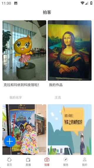 2、在拍客页面点击加号按钮,弹出拍客上传我的拍客选项。