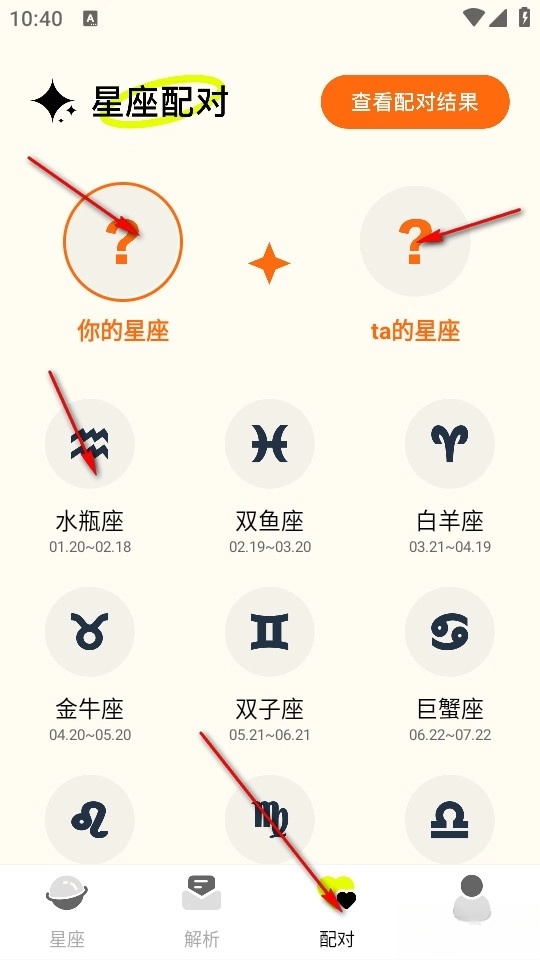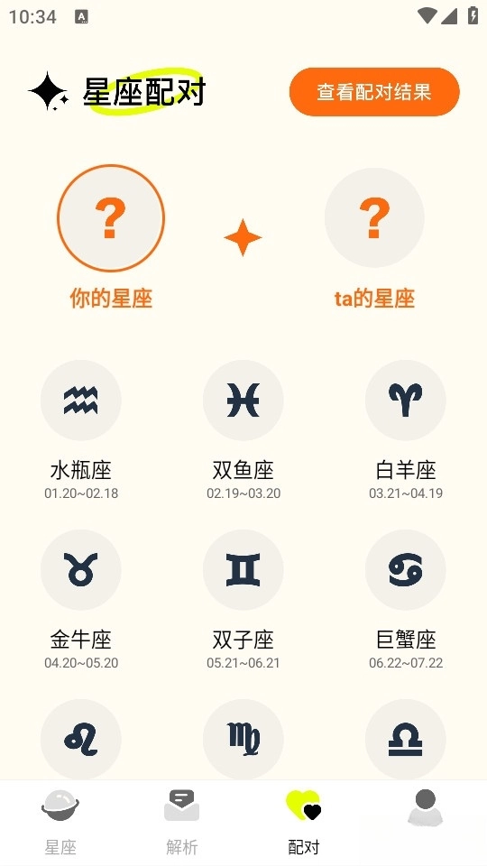 我们还能在配对功能里帮你给另一半进行配对,只需把你朋友的星座和你的星座输入进去进行配对,就能看到结果了。
