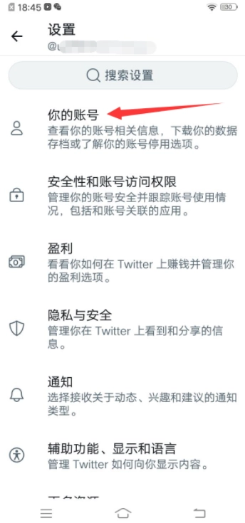 3、在以下设置选项中点击“你的账号”。