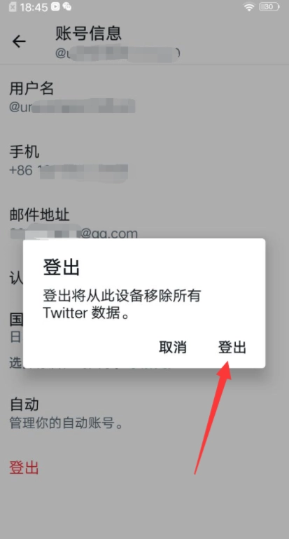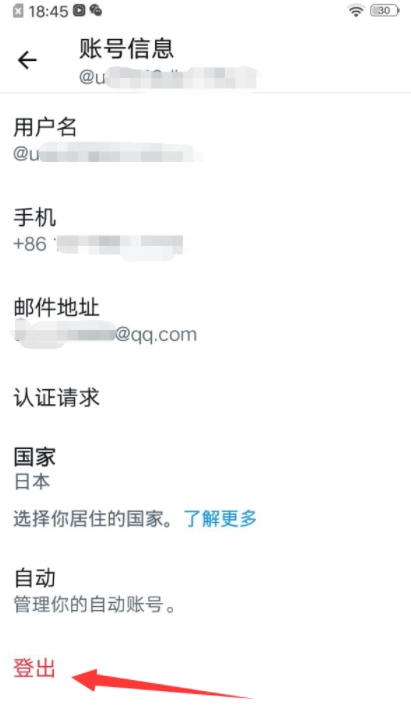 5、在账号信息界面点击下方的“登出”选项。