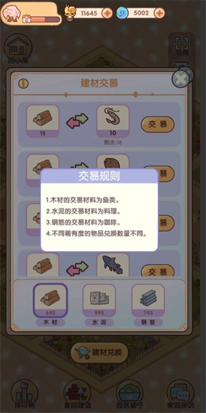 4.建材兑换:优化家园建材兑换时显示物品名称