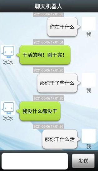 2、在聊天界面底部输入框输入内容,点击右侧【发送】按钮与机器人交流。