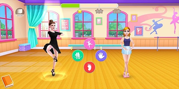 玩家成功考入顶尖的荣耀舞蹈学校后,需要同时面对严苛校长的审视、高强度的专业舞蹈训练,以及校园里无处不在的激烈竞争。剧情里还交织着情感纠葛:校内人气男生山姆对玩家角色心存好感,可他的女友维多利亚不仅舞技精湛,性格也十分强势,会在各个方面与玩家展开竞争、处处针对。随着年末双人舞活动的日益临近,领舞位置的争夺成为了剧情的核心矛盾,玩家做出的每一个选择,都可能改变最终的故事走向。 多元舞蹈训练系统:游戏内涵盖芭蕾、街舞、爵士、拉丁等丰富舞种课程,玩家能自主规划专属的练舞日程。训练时,需要完成蹲姿、脚尖旋转等专项动作练习,还要精准复刻老师教授的动作序列以通过试镜考核;完成任务后,就能解锁更高级别的舞蹈课程,持续精进自身舞技。与此同时,为了维持舞者的理想身形,玩家还需在健身房进行举重、转呼啦圈、骑动感单车等体能训练项目。 角色形象定制与装扮系统:游戏拥有海量服饰、发型、妆容及配饰资源库。玩家可自由组合搭配,打造独一无二的个人风格——合适的造型不仅能提升角色魅力值,专业的舞蹈服还能让角色在舞台表演和赛事中更具视觉亮点,部分限定装扮甚至能为演出提供额外的表现力加成。 竞技对决与赛事挑战玩法:核心竞技模式围绕舞力比拼展开,玩家可在对决中尽情展示所学的舞蹈技艺。此外,游戏还设置了从校内日常考核到各类公开表演活动的多元赛事体系,玩家通过在这些舞台上的出色发挥,积累人气值与成就点数,一步步朝着“校园舞蹈明星”的目标稳步迈进。
