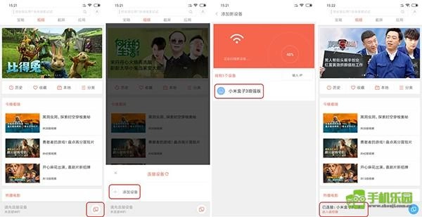 3、此时系统会自动搜索局域网内的电视或盒子设备,接着在搜索结果列表里点击你想连接的那台设备。连接成功后,页面底部就会显示出所连接设备的名称,具体可参考下图。
