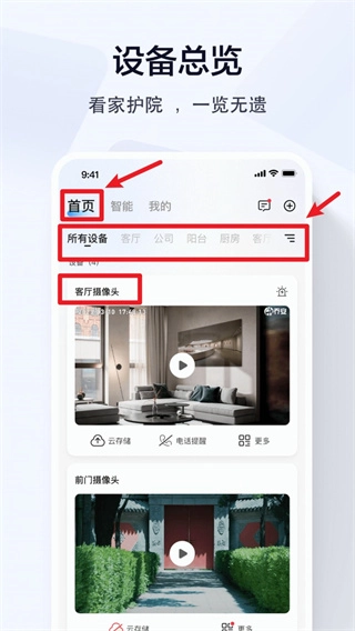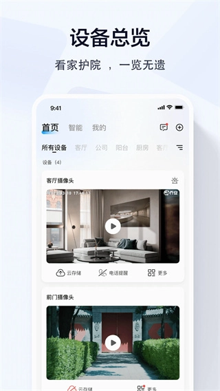 随时查看家里、商铺、办公室等场所的实时视频、云端录像,轻松管理。