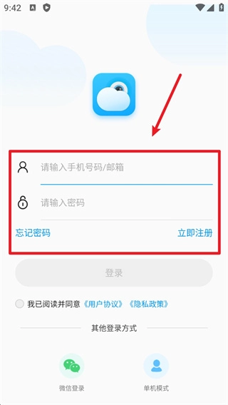 1、在本站完成安装后点击打开进入,输入手机号与密码或邮箱进行登录,首次使用的用户请先完成注册操作。